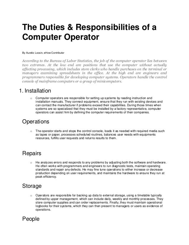 Computer Operator Supervisor Resume Crane Operator Resume Sample