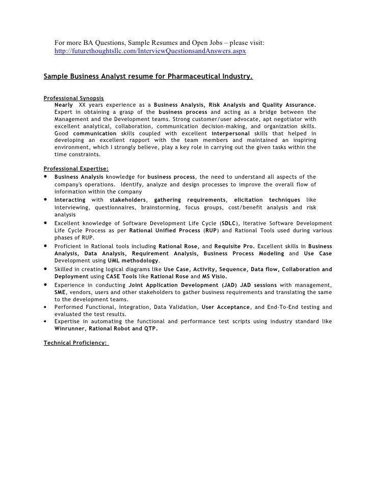Business Analyst Sample Resume For Pharmaceutical Companies