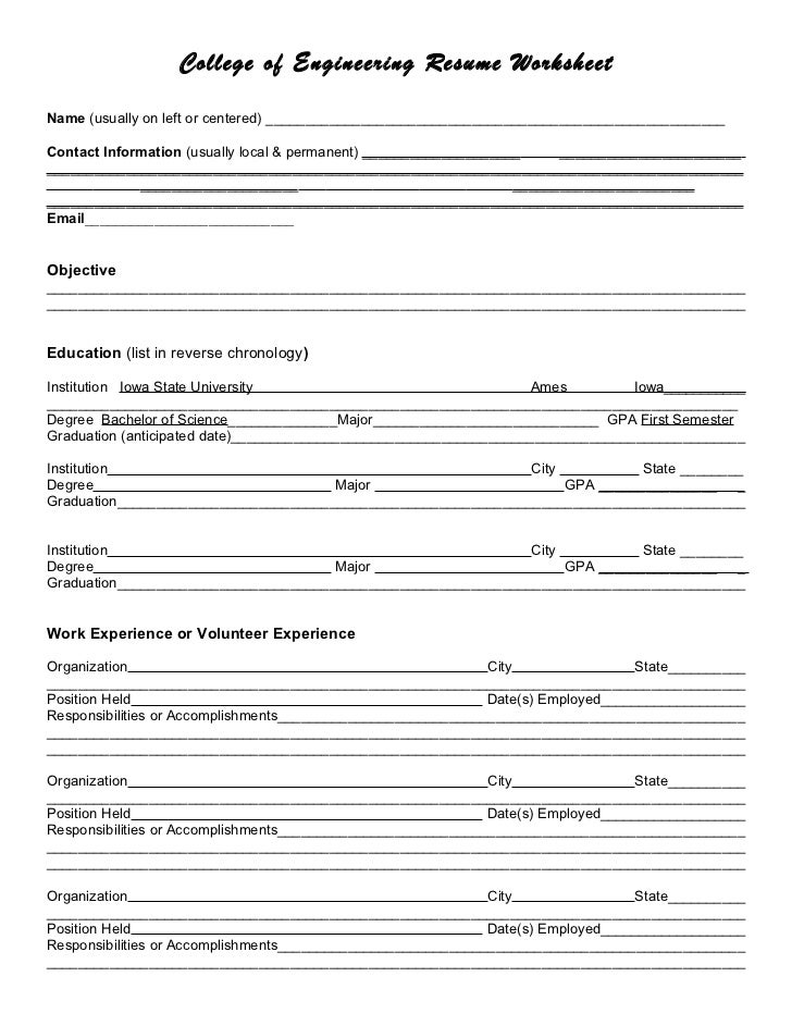 Resume Builder Worksheet Resume Worksheet Template Resume Builder