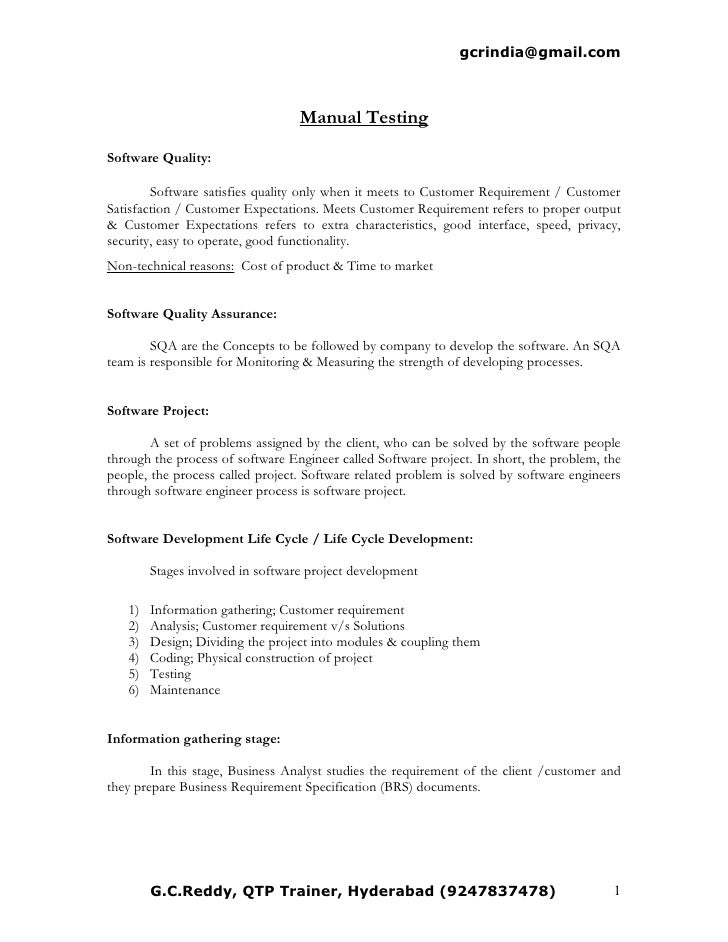 Qtp Manual Testing Resume Resume Examples Sample Manual Testing