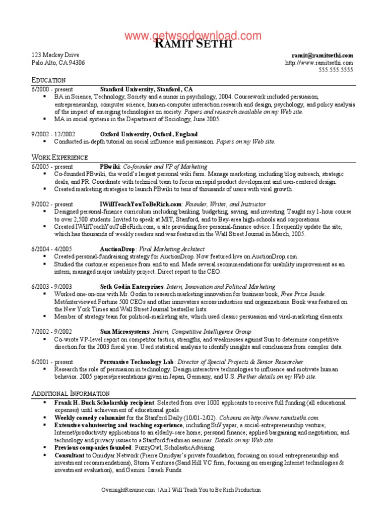 Ramit Sethi Resume Pdf