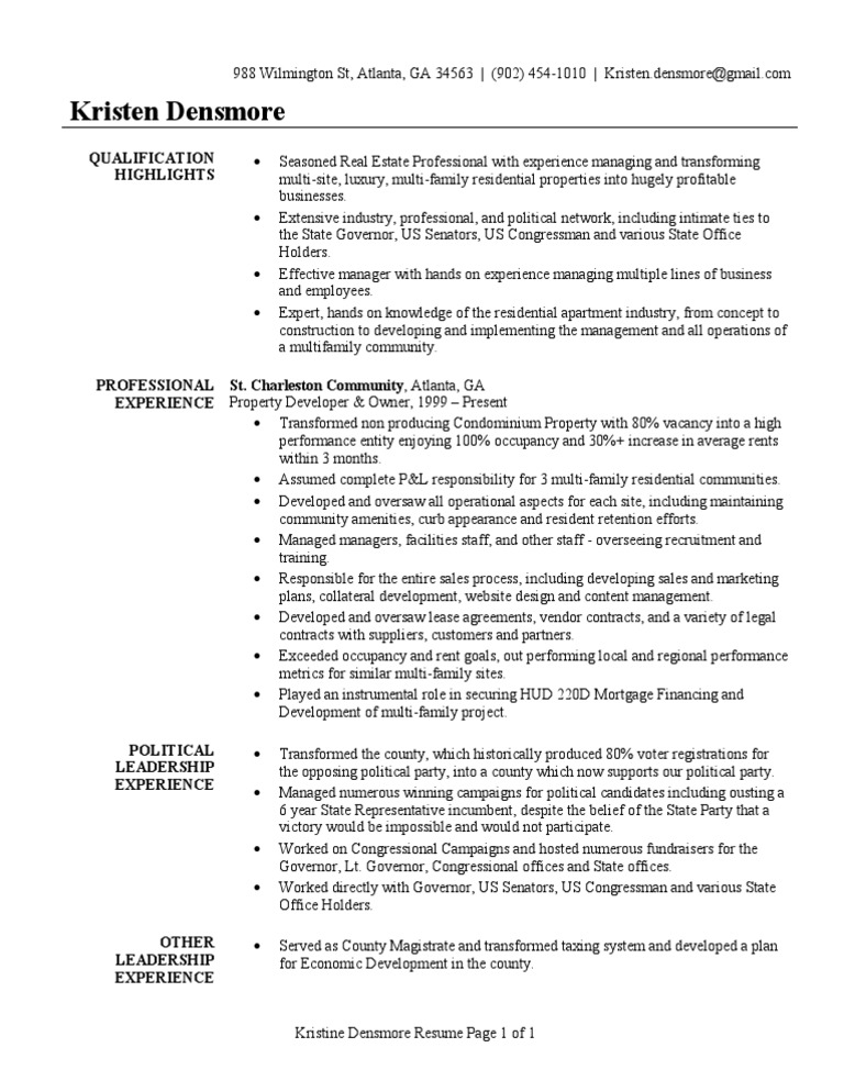 Real Estate Developer Resume Sample United States Congress