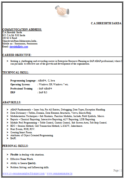 Resume Blog Co Resume Sample Of Ca Cwa Fresher