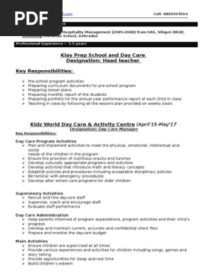 Resume For Daycare Center
