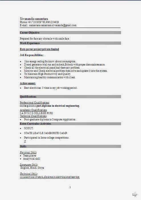 Iti Electrician Resume Free Download Www Bluskymarketing Com