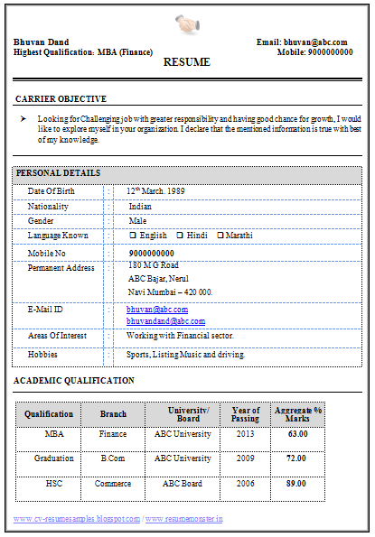 Resume Format For Mba Finance Fresher 1 Resume Format Download
