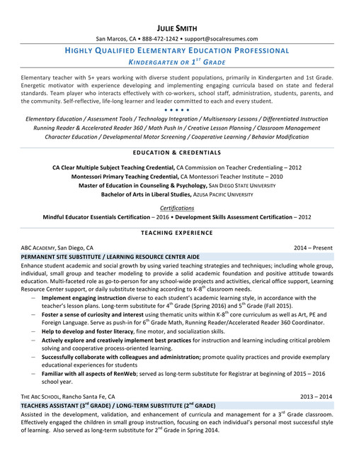70 Elegant Stock Of Montessori Teacher Resume Examples