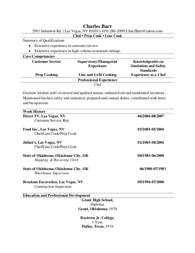 It s the snappy introduction that reels in. For resume writing tips view this sample resume for a line cook that resume expert kim isaacs created below or download the line cook resume template in word. Prep cook the mall resume examples samples deliver exceptional customer service by preparing food items consistently and adhering to all recipe standards maintain a safe working environment by using proper food handling skills and food safety guidelines complete kitchen tasks such as line setup food preparation cleanup and breakdown.