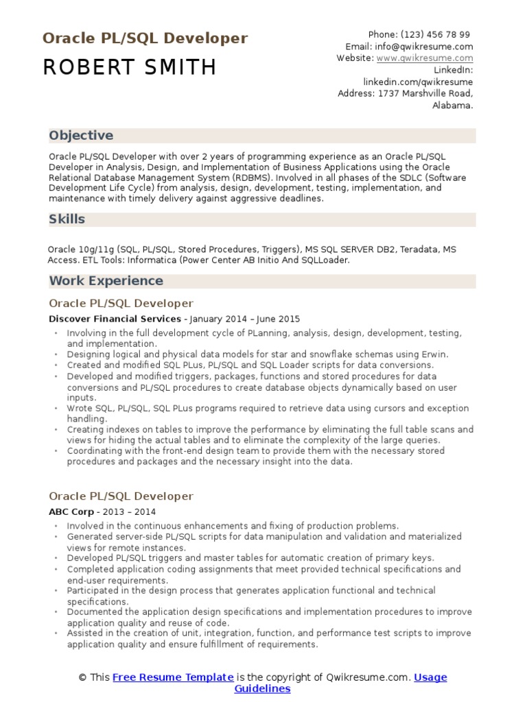 Professional Pl Sql Developer Templates To Showcase Your Talent