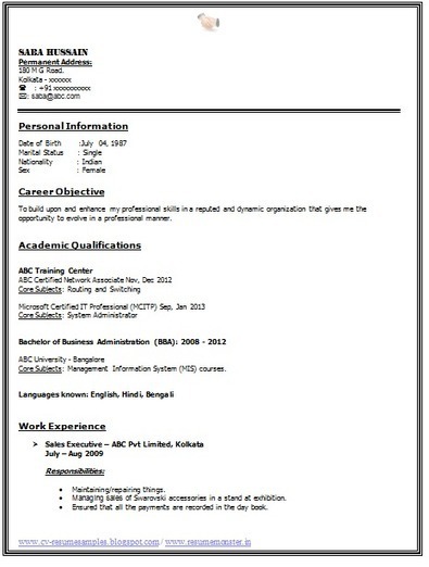 Resume Format For Freshers Bba Sample Resume Format For Bba