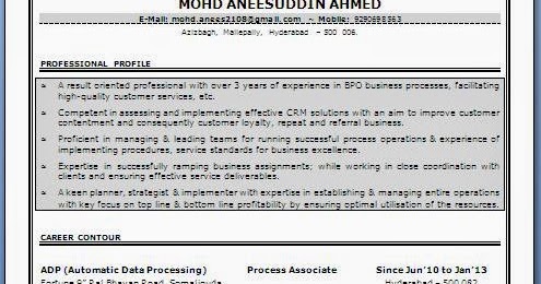Bpo Resume Format Job Resume Format Resume Format For Freshers