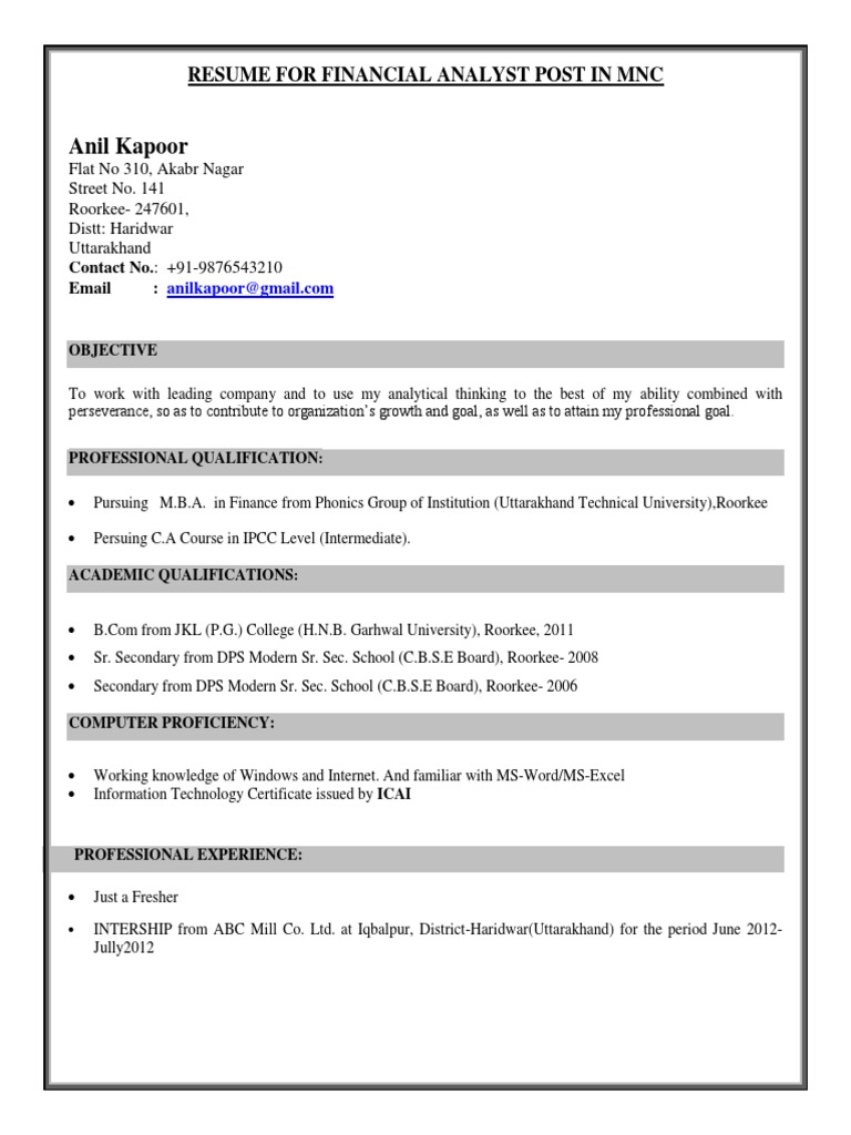 Resume Format For Job Fresher Best Resume Format For A Fresher
