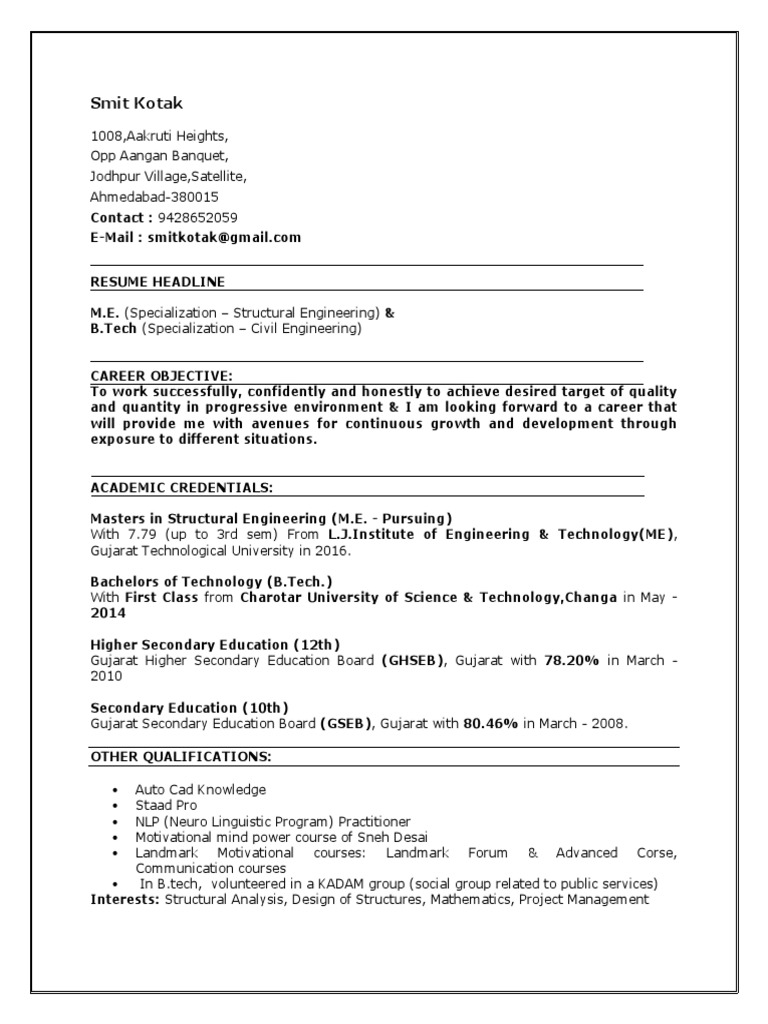 Resume Headline For Civil Engineer Resume Headline For B Tech