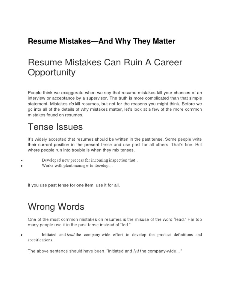 Resume Writing And Tense Should I Write My Cv In The Past Or The
