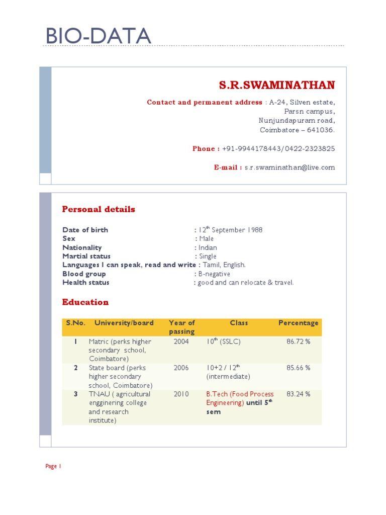 Guide On Biodata Writing With Its Categories And Sample Formats Resume