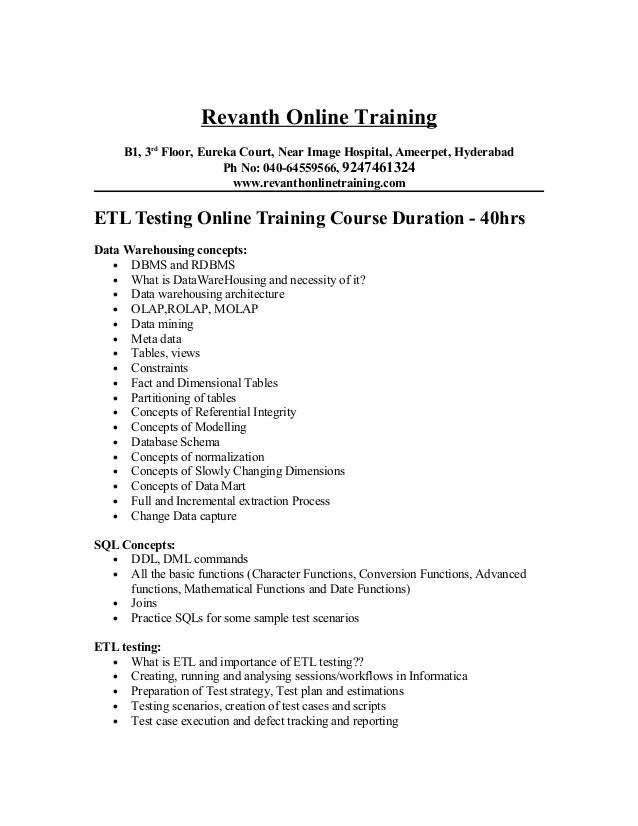 Etl Testing Contents
