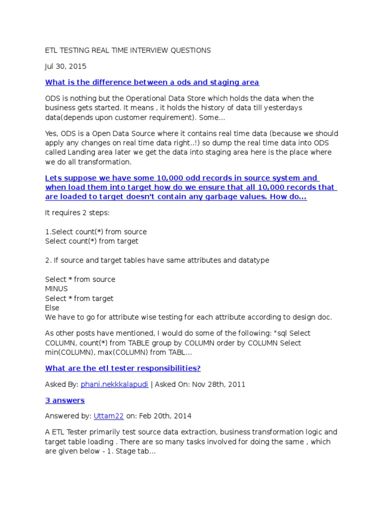 The Best Etl Testing Interview Questions Updated 2020