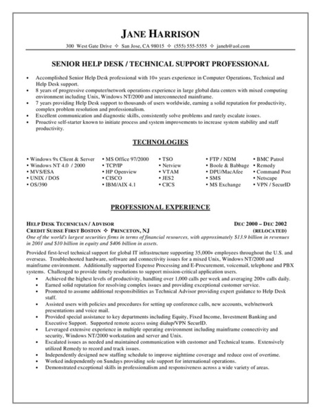 Resume Help Resume Help Desk Support Occupational Examples