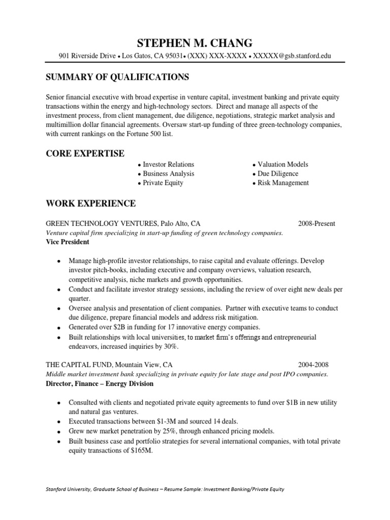 Gsb Sample Investment Banking Private Equity Tech Start Ups
