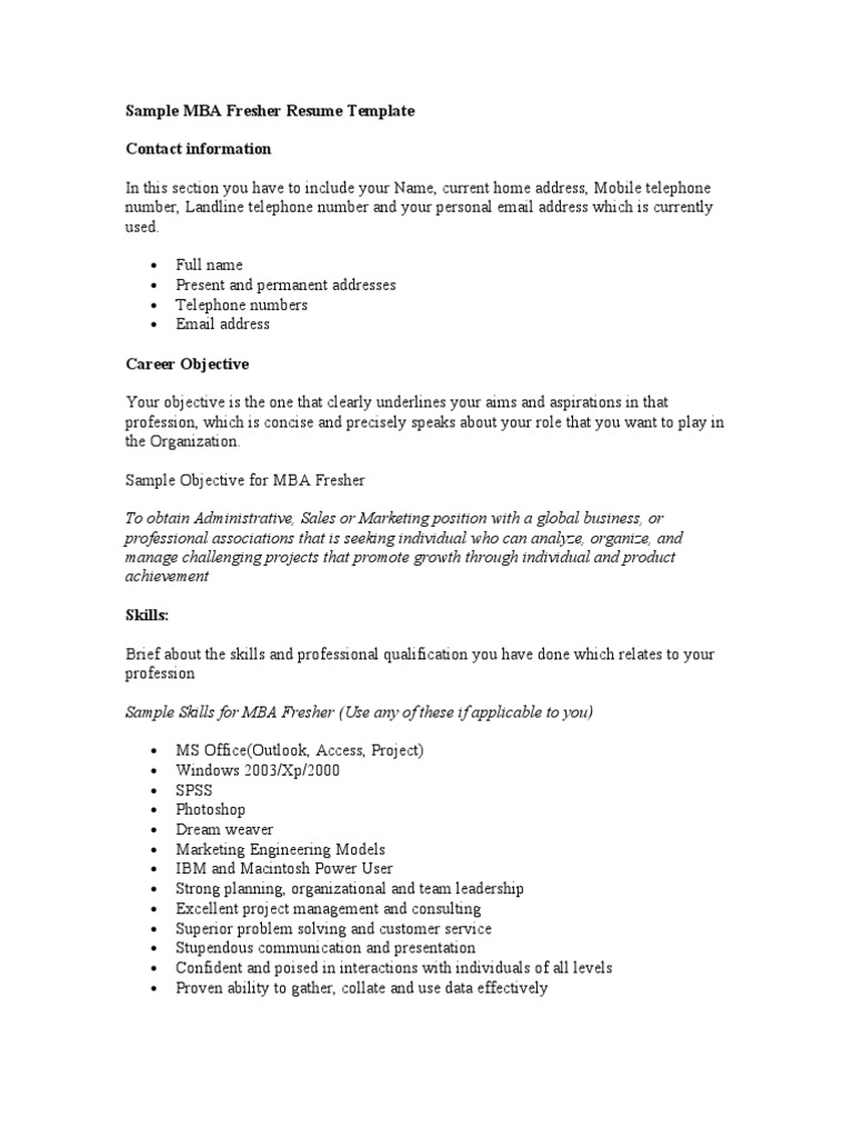 Sample Fresher Mba Resume Templates At Allbusinesstemplates Com