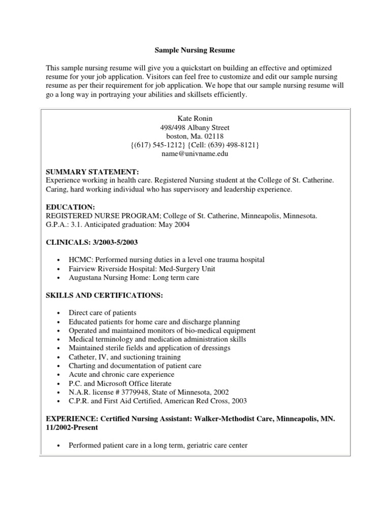 Example Student Nurse Resume Free Sample Student Nurse Resume