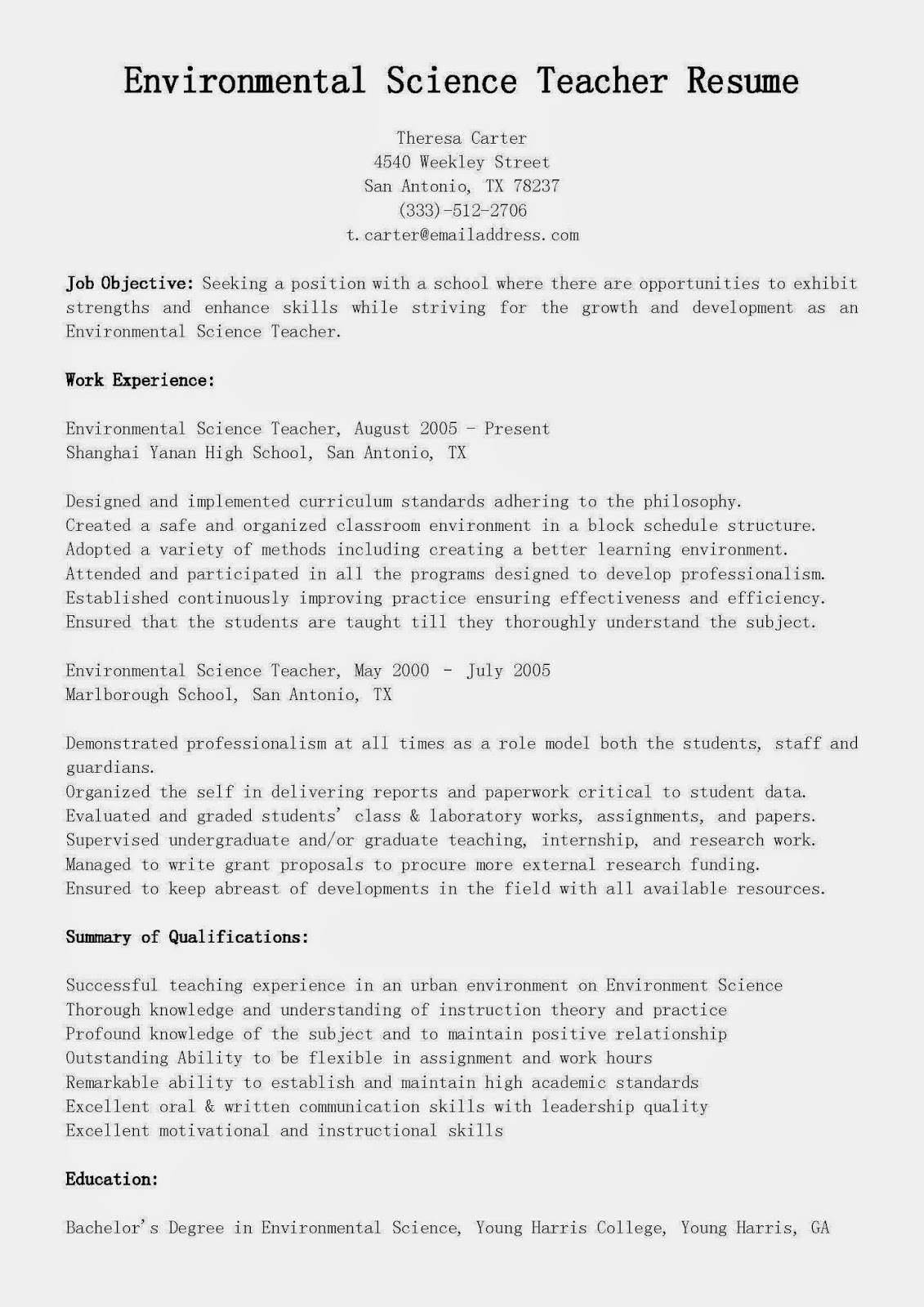 Sample Teacher Resume Objective