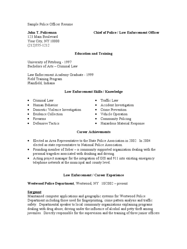 Sample Police Officer Resume Templates At Allbusinesstemplates