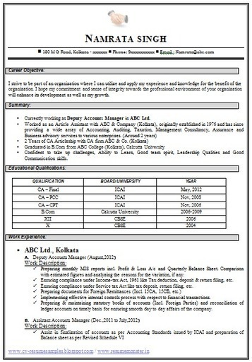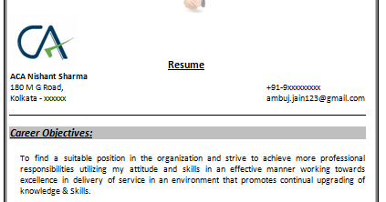 Best Resume Format For Chartered Accountant