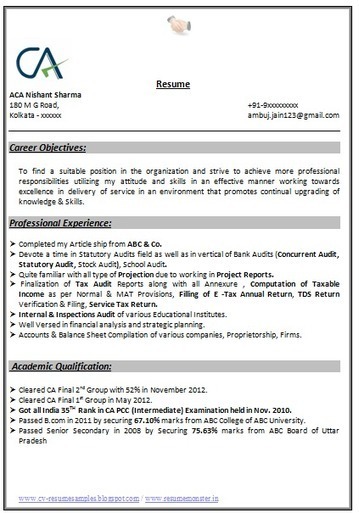 Sample Resume For Chartered Accountant
