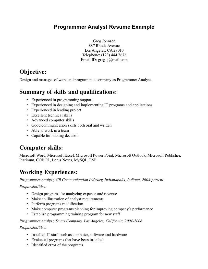 Resume Example Images Resume Format For Mis Executive