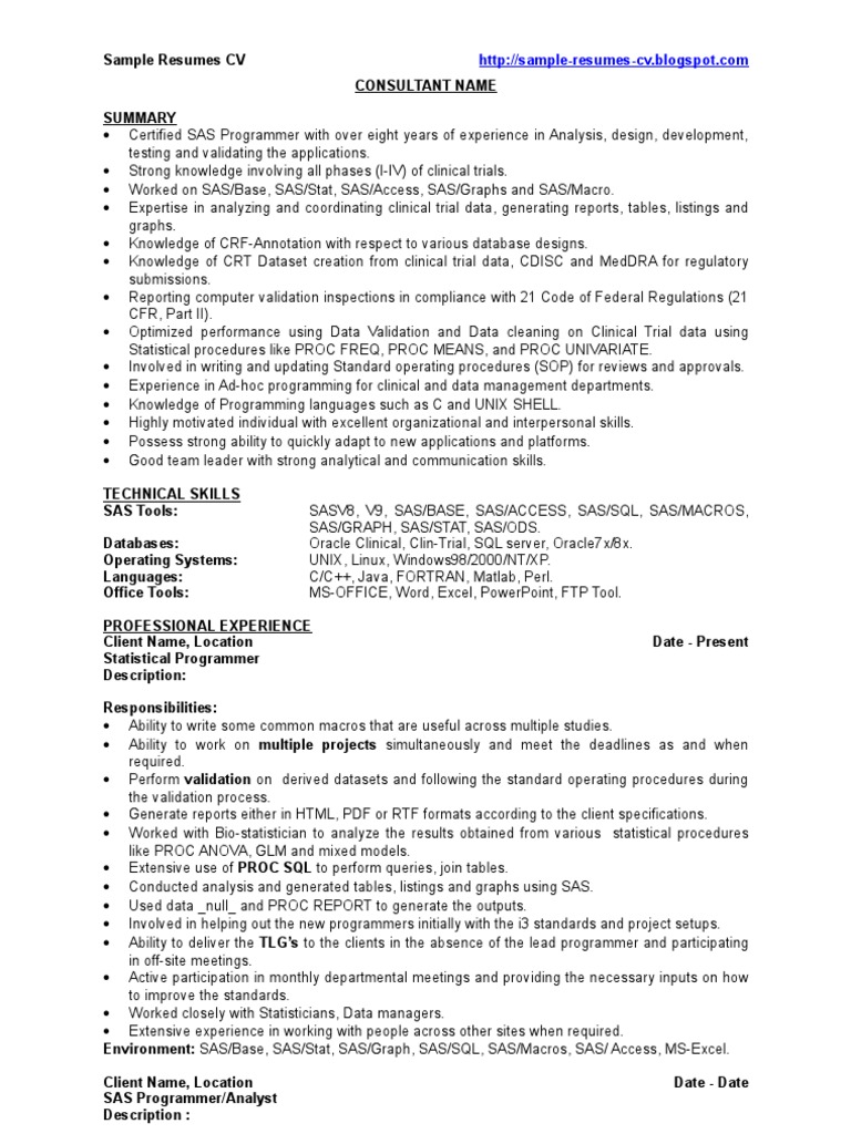 Sas Developer Sample Resume Cv Sas Software Clinical Trial