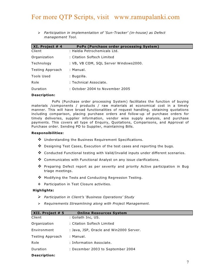 Qtp Sample Resume