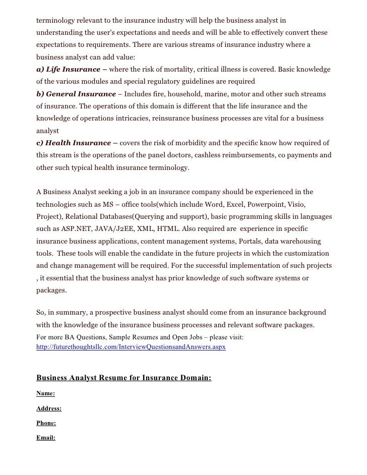 Business Analyst Resume Insurance Industry Asleafar