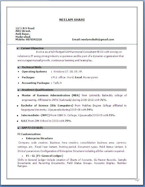 Sap Fico Sample Resumes Download Resume Format Templates