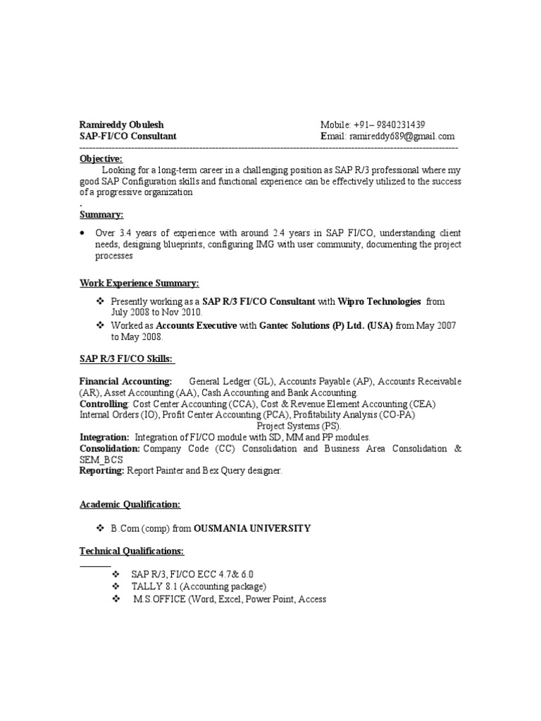 Sap Fico Resume Template