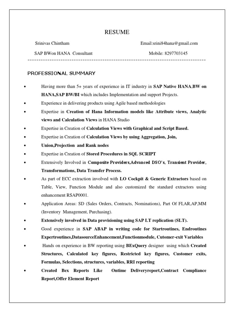 Sap Bw On Hana Sample Resume 3 1 2nv8g27korlk