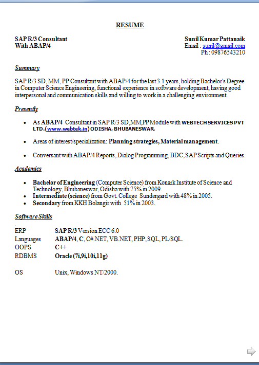 Sap Abap Sample Resume 3 Years Experience Mightbe Me