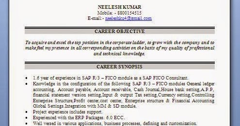 Sap Fico Fresher Resume Cv Free Download Now Resume Samples