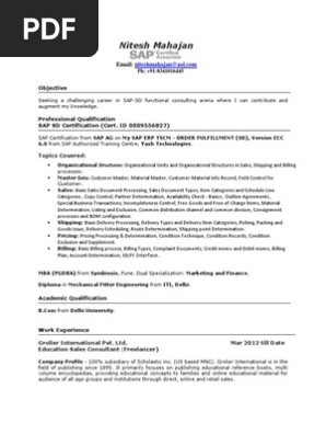 Sap Sd Certified Fresher Cv Sap Se Sales Free 30 Day Trial