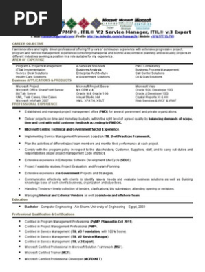 Projects Manager Resume Pmp Itil V 2 Service Manager Itil V 3