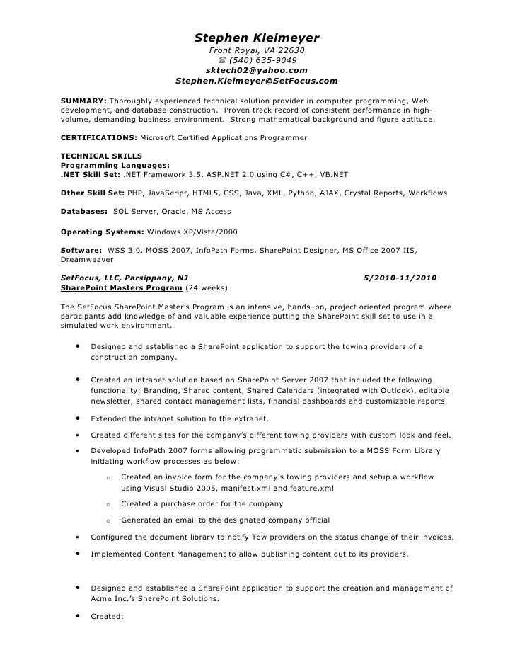 2 years of experience with sharepoint components including web parts pages and services. And the hiring manager is now hooked. Their resumes reflect such skills as installing and configuring sharepoint 2013 and office web app server farm for production.