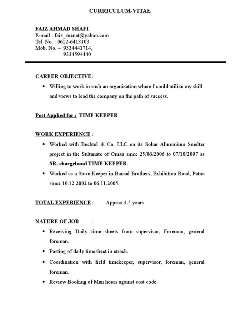14 Resume Format In Word For Store Keeper 14 Resume Format In Word