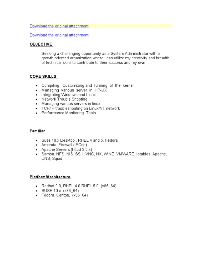Red Hat Certified Systems Administrator Resume Example Rhcsa