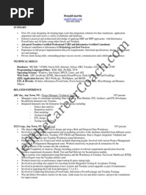 Teradata Sample Resume Sql Oracle Database Free 30 Day Trial