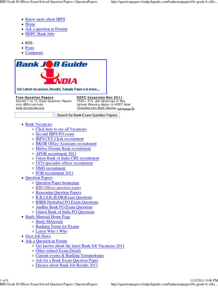 Rbi Grade B Officer Exam Solved Question Papers Question Papers