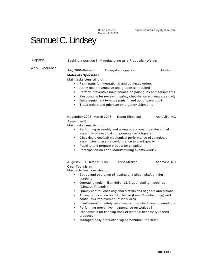 Assembler Resume Sample Objectives Skills Duties And